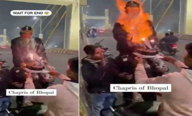 लेक सिटी में राजभोज ब्रिज पर एक युवक को हैप्पी बर्थडे का जश्न मानना भारी पड़ा गया। युवक अपने दोस्तों के साथ मस्ती करते हुए जन्मदिन मना रहा था। लेकिन दोस्तों की गलती ने उसे मौत के मुंह तक ले गया। हुआ यूं कि केक और केमिकल वाला स्प्रे करने से बर्थडे बॉय के मुंह में आग लग गई। हालांकि वह बाल-बाल बच गया। लेकिन इसका वीडियो सोशल मीडिया पर जमकर वायरल हो रहा है।