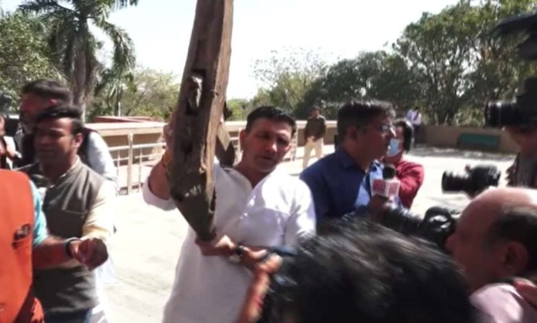 भोपाल। मध्यप्रदेश विधानसभा में आज से बजट सत्र शुरू हो गया है। सदन की कार्यवाही शुरू होते ही राज्यपाल मंगू भाई पटेल का अभिभाषण हुआ। जिसके एक घंटे से पहले ही सदन की कार्यवाही कल तक के लिए स्थगित कर दी गई। इससे पहले पूर्व मंत्री जीतू पटवारी हल लेकर विधानसभा पहुंचे थे, जहां सुरक्षाकर्मियों के साथ गहमागहमी का माहौल बन गया। आपको बता दें कि कल सीएम शिवराज सिंह चौहान झाबुआ के हलमा महोत्सव में गैती लेकर पहुंचे थे। जिसके बाद आज पूर्व मंत्री जीतू पटवारी कंधे पर हल लेकर विधानसभा के बजट सत्र में पहुंचे और कहा कि यह पुराना हल है। कल मुख्यमंत्री गैती लेकर पहुंचे थे।