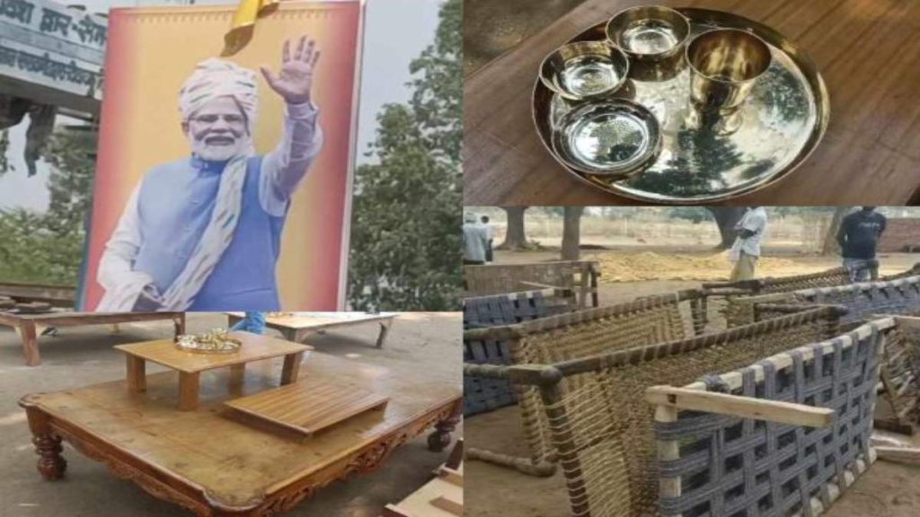 आपको बता दें कि पीएम मोदी 27 जून को शहडोल के लालपुर हवाई अड्डा मैदान में एक आम सभा को संबोधित करेंगे। साथ ही आदिवासी समुदाय के लोगों को देशी बैठक लकड़ी के बनी खाट में बैठाकर संवाद करेंगे। साथ ही जन जातीय समुदाय के लोगों के लिए भी 100 से अधिक खाट (खटिया) मंगाई गई है। खास बात यह भी है कि जिस मिट्टी के बर्तन से पीएम मोदी के लिए खाना बनाया जाएगा, वह मिट्टी के बर्तन शहडोल संभाग के उमरिया जिले के चंदिया गांव के स्थानीय कुम्हारों द्वारा बनाए गए है।